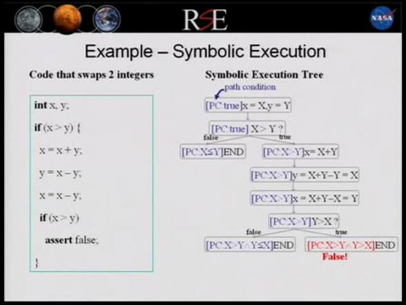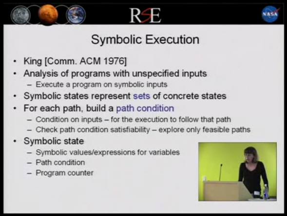 英語では“symbolic execution (tool)”というようなので、それで検索してみると、こんな1時間の動画が見つかりました。ホワイトボックステストのテストケース作成にあたって、変数(symbol)に具体的な値を与えるのでなく、変数は変数のままで実行経路を解析する方法のようです。