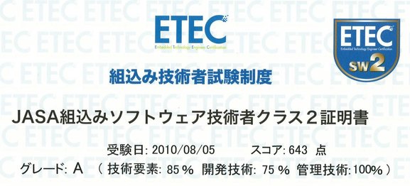 2年ほど前にETEC運営会社の社長さんとお会いしたのが縁で、今日『JASA組込みソフトウェア技術者試験クラス2』(ETEC)を受験してきました。MCPなどと同じCBT(コンピュータによる試験)で、プロメトリックテストセンターで受験します。…といいつつ、私はプロメトリックでCBTを受験すること自体が初めてだったりします。