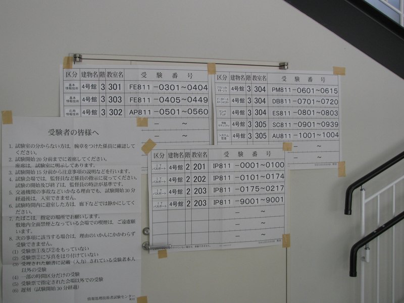 そこから3階へ移動し、プロマネの午前IIから受験です。受験者数が少ないので、同じ教室でデータベースとエンベデッドもやっていました。いわゆる複式学級です。今度は、おじさんばっかりの教室